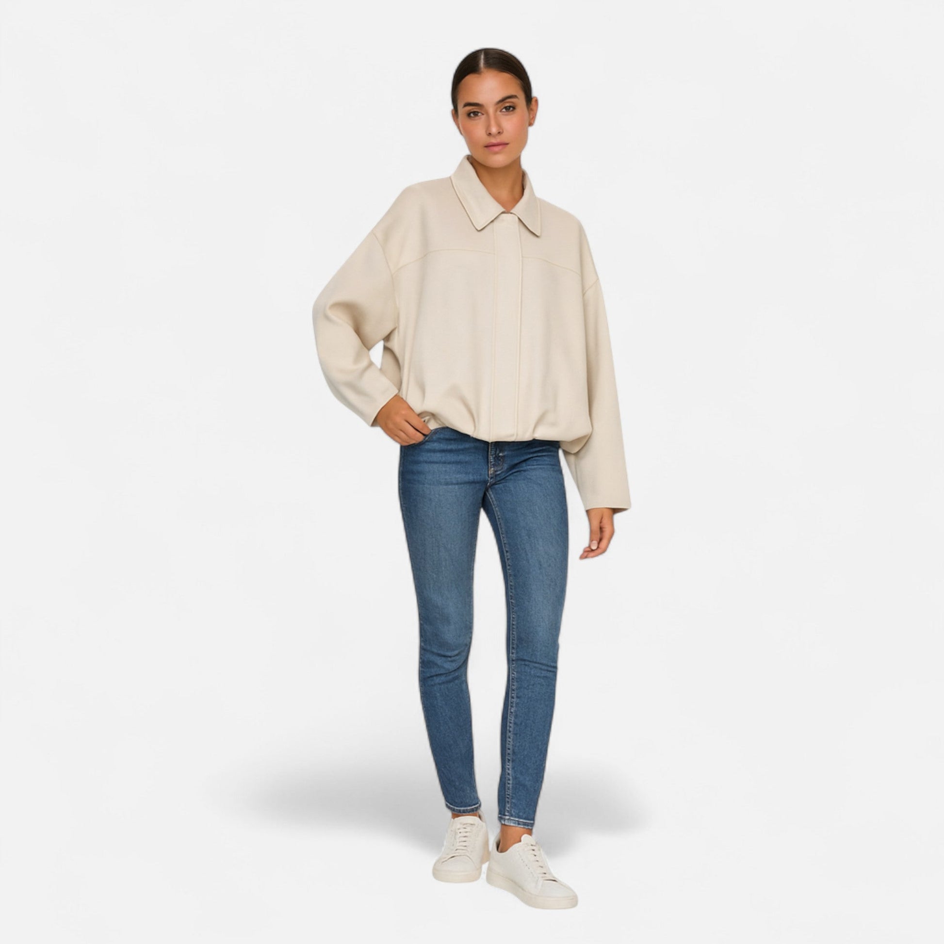 Effortless Chic – A contemporary bomber that blends masculine structure with feminine softness.